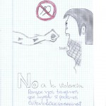 Eva Cardú, Carmen García llevaron la exposición Imágenes para pensar al Instituto Segundo Chomón, Teruel. Aparte de una actividad educativa unos alumnos nos entregaron estás obras por la Paz. Bruno Javier Anonimo